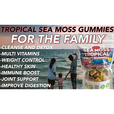Thông tin sản phẩm Sea Moss and Tropical fruit Gummies | min 60 in a pack 300g | Vegan, Non GMO, Made with Real Fruit & wild crafted sea moss| Moringa Tea and Coconut Sugar Natural no perfect shaped gummie chemicals!
