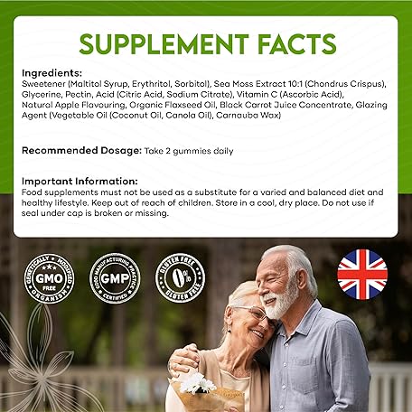 Thông tin sản phẩm Sea Moss Gummies - Premium 5000mg Complex, Antioxidant & Immune Support with Vitamin C & D, Natural Apple Flavor, Strict Quality Standards, Convenient 30-Day Supply