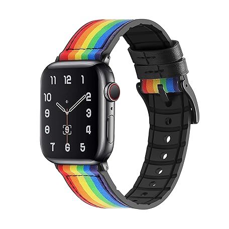 SEARME TREND Pride Rainbow Band Compatible with Apple Watch Ultra/Ultra 2 Band 49/46/45/44/42/40/38/41mm for iWatch Series 10 9 8 7 SE 6 5 4 3 2, Genuine Leather Silicone Hybrid Strap for Women Men