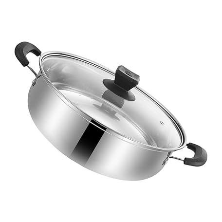 SECFOU Large Stainless Steel Hot Pot for Induction Cooktops Double Handle Cooking Pot with Even Heat Distribution Metal Stockpot for Family Soup and Hotpot Meals