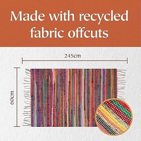 Sản phẩm Second Nature Online - SHANTI Multi Coloured Runner Rug | Hand Woven | Eco-Friendly: 100% Recycled Fabric | Ethically Sourced | Flat Weave (60 cm x 245 cm) đang được bán với giá ưu đãi là $43.7199 tại nước Anh.