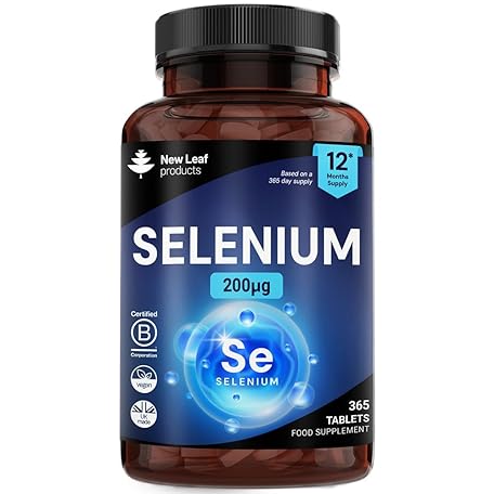 Selenium Tablets - 365 Vegan Selenium Tablets 200µg Per Serving - Supports Normal Immune System & Thyroid Function - 12 Month Supply Made in The UK by New Leaf