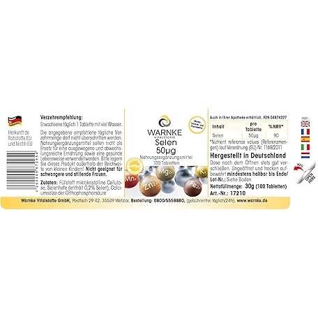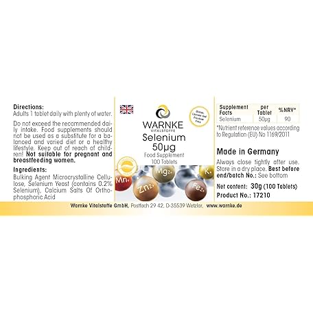 Thông tin sản phẩm Selenium Yeast, 50 mcg, 100 Tablets – Vegitarian (Pack of 1 x 0.03 kg) | Warnke Vitalstoffe - German Pharmacy Quality
