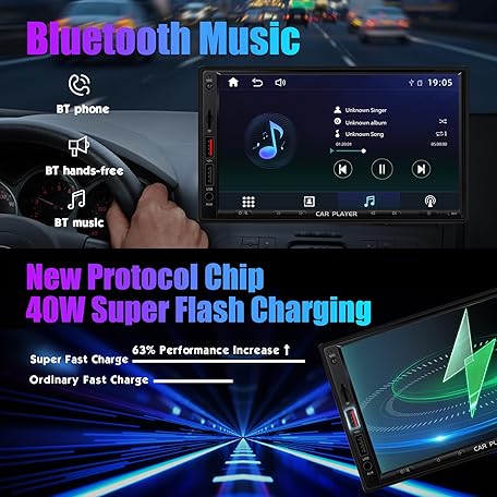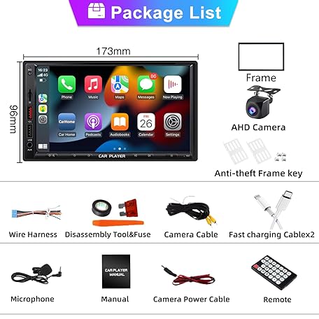 Thông tin sản phẩm SEMAITU Double DIN Car Stereo, 7" Touch Screen Car Audio for Wireless Apple Carplay & Android Auto, Compatible Voice Control, Backup Camera, Quick Charge, GPS Navi, Bluetooth/FM/AM/RDS/MIC - TH006CP