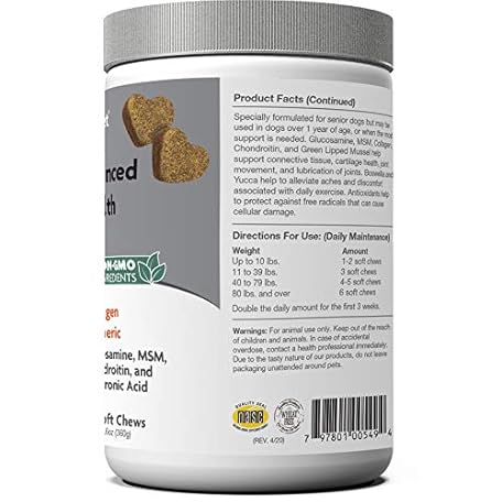 Thông tin sản phẩm Senior Advanced Joint Health Dog Supplet Includes Glucosamine Msm, Chondroitin, Collagen Helps Supports Canine Joint Health Function 120 Ct. Soft Chews