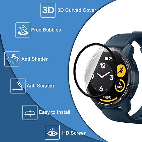 Thông tin sản phẩm SeNool Screen Protector Compatible with Xiaomi Watch S1 Active [2 Pack], [3D Full Coverage, Anti-Scratch, High Sensitivity, Bubble-Free] Protective Film Compatible with Xiaomi Watch S1 Active