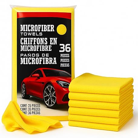 Senshi Japan Microfiber Towels Compatible With Kirkland Cleaning Cloths, Polishing, Buffing, 40.6cm x 40.6cm Ultra Plush Yellow (9 Pieces)
