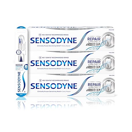 Thông tin sản phẩm Sensodyne Toothpaste Repair and Protect, Teeth Whitening Toothpaste Multipack with Sensodyne Toothbrush, 3 x 75ml