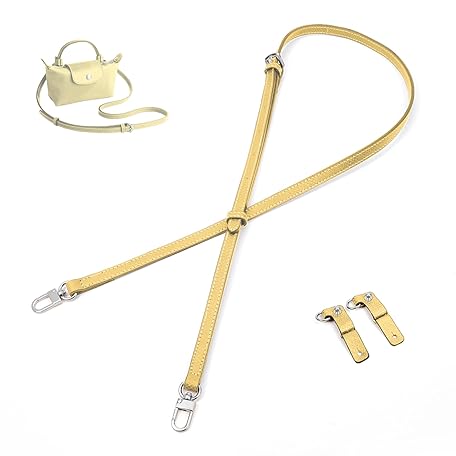 • SENTEN Purse Straps Replacement for Longchamp Bag Women, Leather Crossbody Shoulder Strap Kit Adjustable for XS Longchamp Tote Bag Primitive(Ginger Yellow Silver)