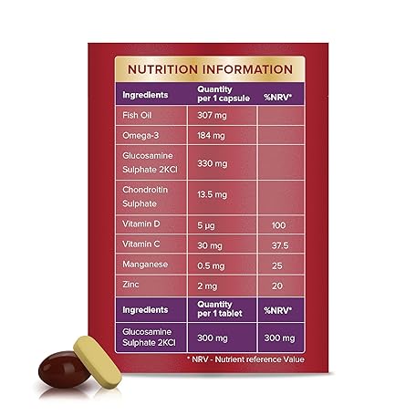 Thông tin sản phẩm Seven Seas JointCare MAX GLUCOSAMINE With Omega-3, Glucosamine, Chondroitin, Vitamins C and D, Manganese and Zinc, Food Supplements, 30-Day Pack