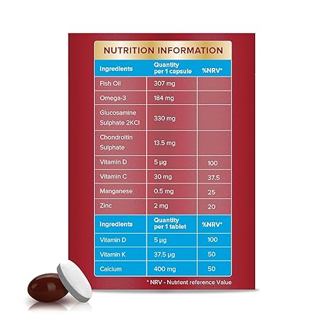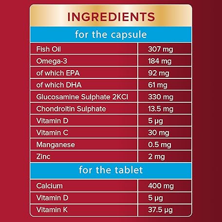 Thông tin sản phẩm Seven Seas JointCare Plus Calcium, with Omega-3, Glucosamine, Chondroitin, Vitamins C, D and K, Manganese and Zinc, Food Supplements, 30-Day Pack