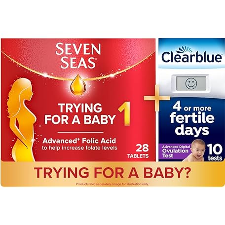 Seven Seas Trying for a Baby & Clearblue Advanced Digital Ovulation Test Sticks Bundle, 28 Prenatal Multivitamin Tablets for Women with Advanced Folic Acid & 10 Digital Ovulation Tests