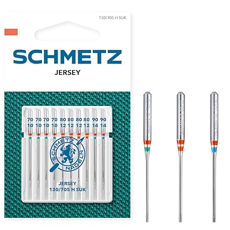 • Sewing Machine Needles: Jersey: SCHMETZ Jersey Sewing Machine Needles – Assorted 70(10)-90(14) Ball Point Needles for Knits & Stretch Fabrics, Prevents Snags & Breakage, 5 Pack: 10 Pieces