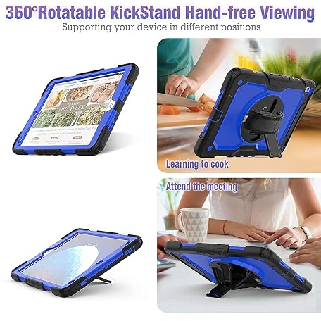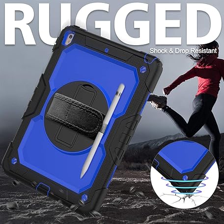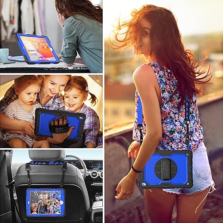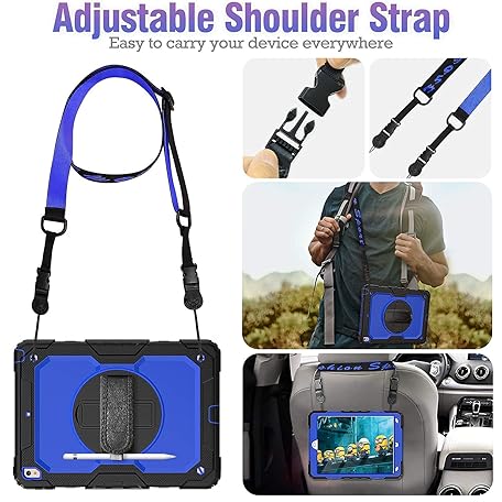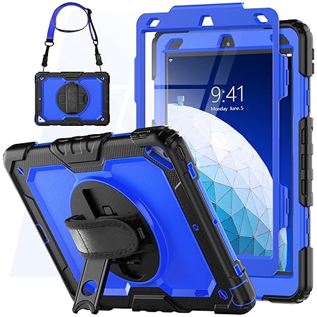 Thông tin sản phẩm SEYMCY Case for iPad Air 3rd Generation 2019/ iPad Pro 10.5 inch Case 2017, Full-body Shockproof with Screen Protector, 360° Rotating Hand Strap & Stand, Pencil Holder, Shoulder Strap, Blue