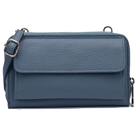 Thông tin sản phẩm SH Leder Vera G368 Women's Mobile Phone Shoulder Bag Purse Multifunctional Bag Made of Genuine Leather Adjustable Shoulder Strap Mobile Phone up to 6.7 Inches 11.50 x 19 cm, D. Denim Blue, Small