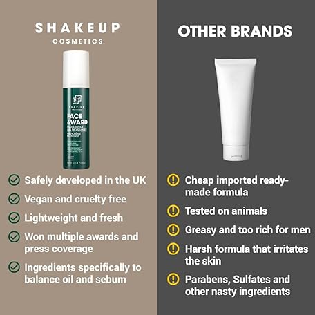 Thông tin sản phẩm Shakeup Cosmetics Mens Daily Moisturiser, Lightweight & Non-greasy, Reduces Shine, Fresh Subtle Scent. Vegan with Matmarine & Hyaluronic Acid, 50ml. Aka. FACE 4WARD MATTE-EFFECT GEL MOISTURISER