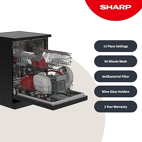 Sản phẩm SHARP QW-NA1CF47EB, Freestanding, Dishwasher, 13 Place Settings, White LED Display, Active Drying, Black Colour đang được bán với giá ưu đãi là $356.0594 tại nước Anh.