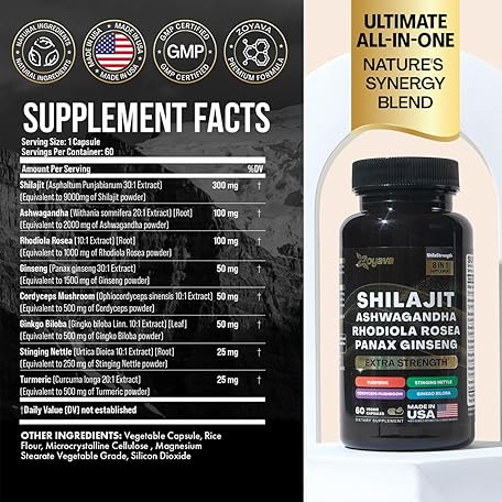 Thương hiệu Zoyava là cái tên nổi tiếng được rất nhiều khách hàng trên thế giới chọn lựa. Với kiểu dáng đẹp mắt, sang trọng, sản phẩm Shilajit 9000 Panax Ginseng 1500MG Ashwagandha 2000MG Rhodiola Rosea 1000MG, Turmeric 500MG, Gingko Biloba 500MG, Stinging Nettle 250MG, Cordyceps Mushroom (60 Caps) là sự lựa chọn hoàn hảo nếu bạn đang tìm mua một món cho riêng mình.