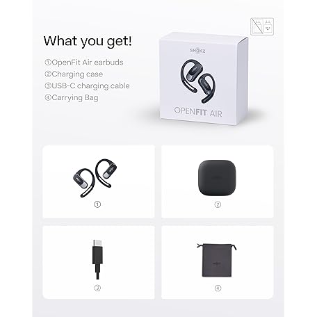 Thông tin sản phẩm SHOKZ OpenFit Air Open-Ear Headphones, True Wireless Bluetooth Earphones with Mic, Fast Charging, 28h Playtime, IP54 Waterproof for Workout - Black