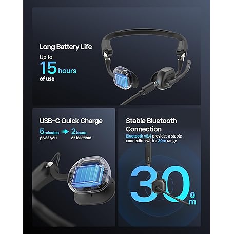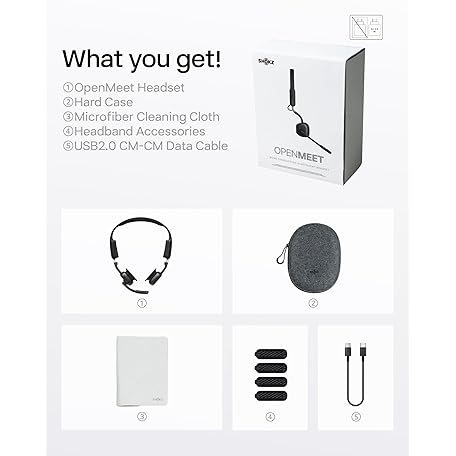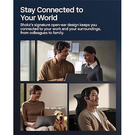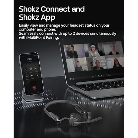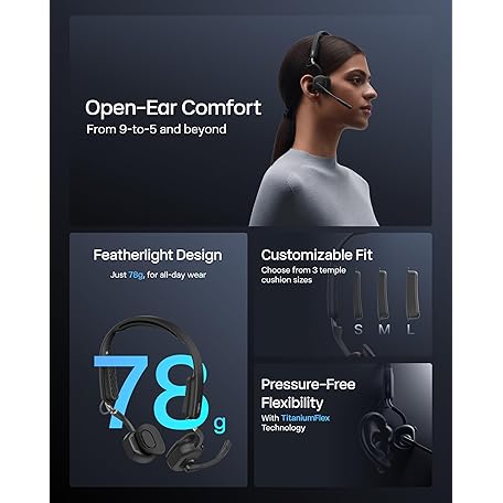 Thông tin sản phẩm SHOKZ OpenMeet Bone Conduction Headset, Open-Ear Bluetooth Headphones with Dual Noise Cancelling Mic, Wireless Earphones for Work, Call, Meeting, Bluetooth 5.4, 15Hrs Battery Life, Quick Charge