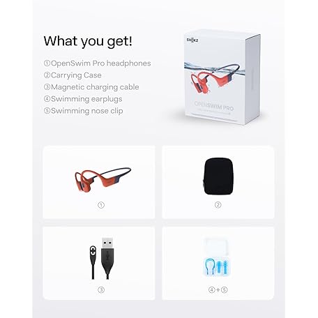 Thông tin sản phẩm SHOKZ OpenSwim Pro Bone Conduction Sports Headphones, IP68 Waterproof Open-Ear Wireless Earphones with Bluetooth 5.4, 32GB of MP3 Storage, Noise Cancelling Mics, 9h Playtime for Running, Swimming-Red