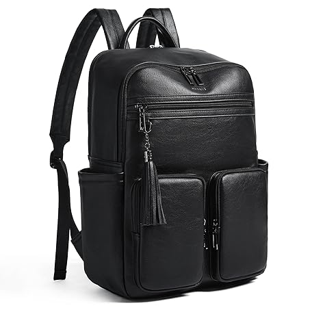 Shrrie Laptop Backpack for Women 16 Inch,Vegan Leather Travel Backpack Purse Work Business Computer Backpacks Teacher Nurse College Laptop Bookbag Casual Daypack,Two-toned Black