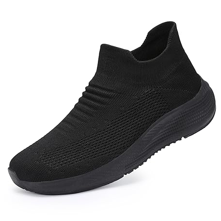 • SHULOOK Womens Slip on Walking Shoes Comfort Lightweight Breathable Sock Shoe Non-Slip Mesh Casual Fashion Tennis Running Sneakers, Black, 4.5 UK