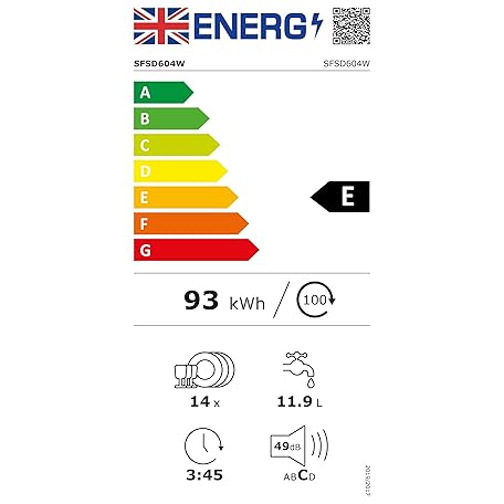Thông tin sản phẩm SIA SFSD604W Freestanding Dishwasher, 14 Place Settings, 4 Program Settings, 29 Minute Quick Wash, White