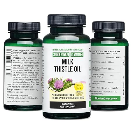 Sản phẩm Siberian Green Milk Thistle Oil Capsules 200 Softgels Wild Harvested Siberia Altai Cold Pressed Unrefined đang được bán với giá ưu đãi là $21.7564 tại nước Anh.
