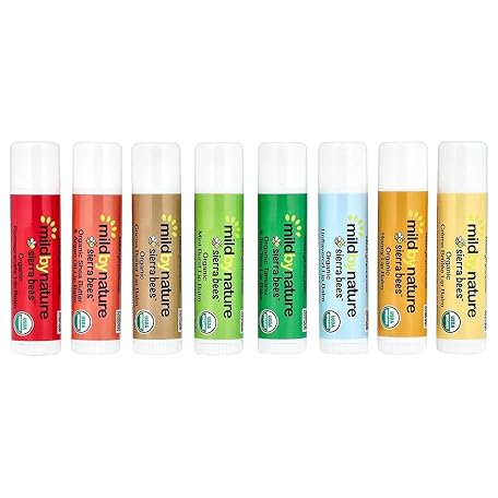 Sierra Bees?, Organic Lip Balms Combo Pack, 8 Pack, 0.15 oz (4.25 g) Each, Mild By Nature