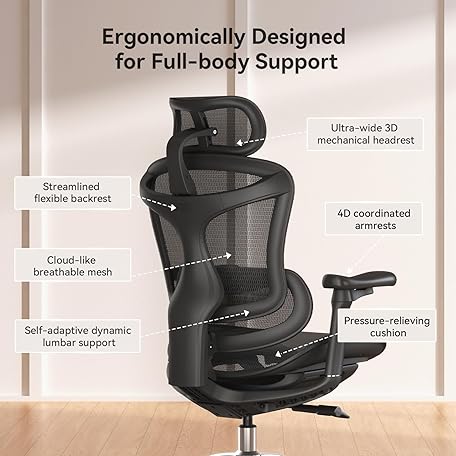 Thông tin sản phẩm SIHOO Doro C300 Ergonomic Office Chair with Ultra Soft 3D Armrests, Dynamic Lumbar Support for Home Office, Adjustable Backrest Desk Chair (Black)