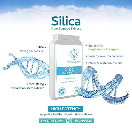 Sản phẩm Silica 225mg - A Potent Highly Bioavailable Form - Naturally Sourced from Bamboo Extract - 90 One-A-Day Vegan Capsules – Exclusively Manufactured in The UK đang được bán với giá ưu đãi là $14.3117 tại nước Anh.