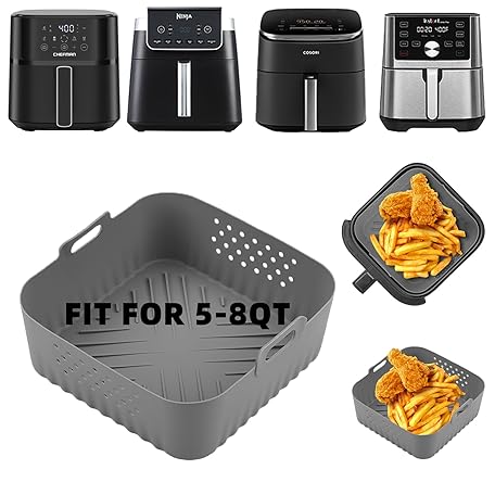 Silicone Air Fryer Basket Liners,2 PCS Square Air Fryer Liners Silicone Reusable for Ninja 5 QT,5 QT MAX,6.5 QT XL,6.5 QT MAX,COSORI 6-Qt,Chefman – 6 QT,Sweetcrispy 6QT,Gourmia 6 QT,OLIXIS 6 Quart
