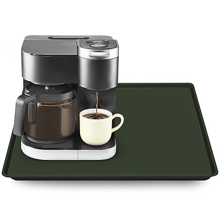 Silicone Coffee Maker Mat with Lip, 19.7'' x 15'' Heavy Duty Coffee Maker Mat for Countertops, Coffee Tray Fit Under Coffee Machine Appliance Automatic Machines Espresso Accessory, Dark Olive Green