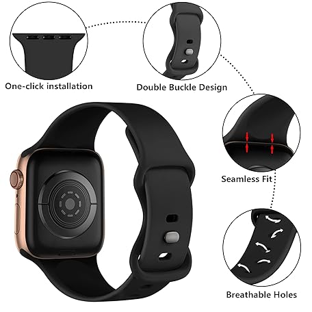 Sản phẩm Silicone Strap Compatible with Apple Watch Strap 40mm 38mm 41mm 42mm, Replacement Straps for iWatch SE 3 Series 11 10 9 8 7 6 5 4 3 2 1, Black, Small đang được bán với giá ưu đãi là $8.1314 tại nước Anh.