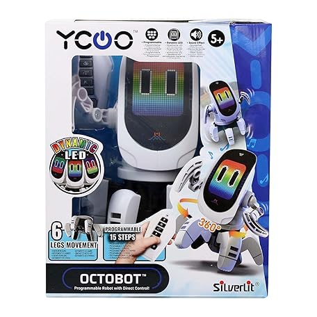 SilverLit YCOO Octobot - Interactive Kids Robot Toy with 6 Legs, LED Face, 15 Programmable Steps, 360° Movement, Light & Music Show, Perfect Educational Gift for Kids, Suitable for Ages 5+