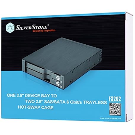 Thông tin sản phẩm SilverStone SST-FS202B - Aluminium Trayless Hot Swap Mobile Rack Backplane / Internal Hard Drive Enclosure for 2x 2.5 Inch SAS/SATA HDD or SSD, fit in any 3.5 Inch Drive Bay, with Lock, black