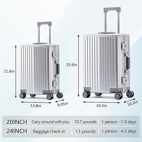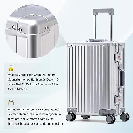 Thông tin sản phẩm Simcat 24 inch All Aluminum Luggage, Aluminum Alloy Hard Shell Suitcase, Lightweight Trolley Luggage Checked Suitcase with TSA Locks, Silent Wheels (Silver,Classic Style)