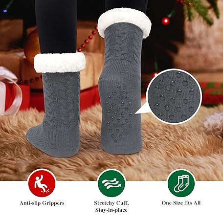 SIMIYA Slipper Socks Women Super Soft Fluffy Socks Warm Sock Cozy Fleece-lined Winter Non Slip Chunky Thermal Sock with Gel Grips