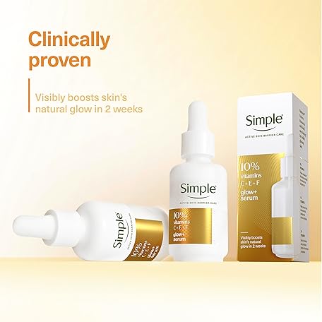 Sản phẩm Simple Glow+ 10% Vitamins C + E + F Serum skin care for dry or dehydrated skin for youthful, glowing skin 30 ml đang được bán với giá ưu đãi là $8.6437 tại nước Anh.