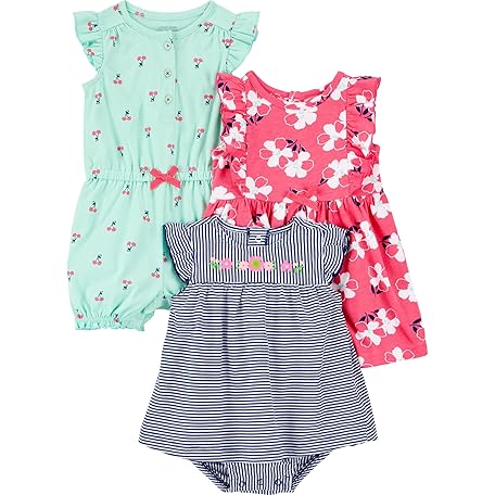 Sản phẩm Simple Joys by Carter's Baby Girls 3-Pack Romper, Sunsuit and Dress Rompers đang được bán với giá ưu đãi là $37.2017 tại nước Anh.