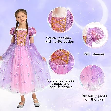 Thông tin sản phẩm Sincere Party Deluxe Light Up Purple Rapunzel Dress,Luxury Princess Costume Dresses for World Book Day,Halloween and More
