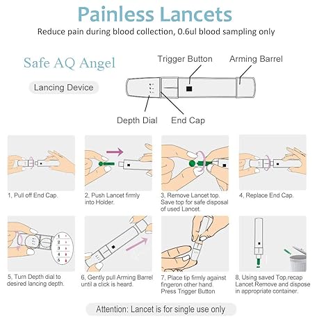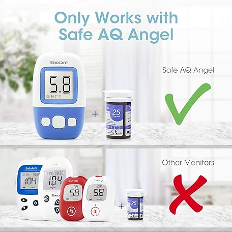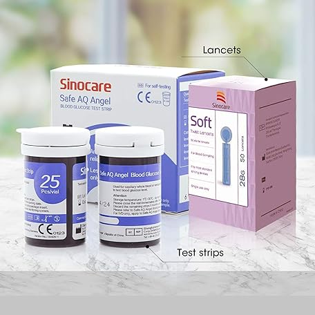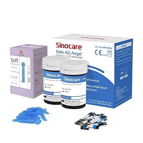Thông tin sản phẩm sinocare Diabete Blood Glucose Test Strips x 50 & Diabetes Lancets x 50, Safe AQ Angel, Blood Sugar Test Strips for Safe AQ Angel Only