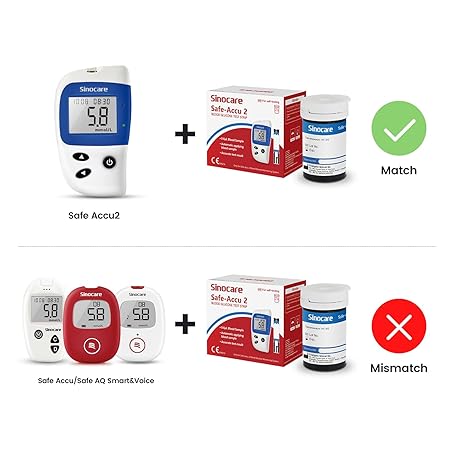 Thông tin sản phẩm Sinocare Safe-Accu2 Blood Sugar Test Strips ×50, Only Applicable to Safe-Accu2 Blood Sugar Monitor, No Lancing Devices, No Code