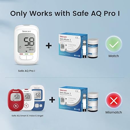 Thông tin sản phẩm Sinocare Safe AQ Pro I Blood Glucose Test Strips Only for Safe AQ Pro I Glucometer (Strips x100), with Lancing Devices × 100, Composite Silver Electrode Test Strips