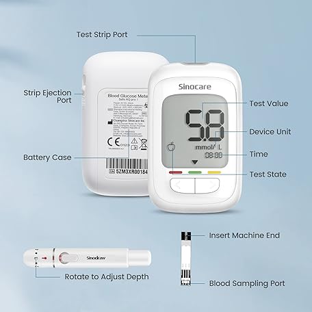 Thông tin sản phẩm sinocare Safe AQ Pro I Blood Sugar Testing Kit, 25 Test Strips, Blood Ketone Warning, 500 Memory, for Diabetes Mangement, Results in mmol/L