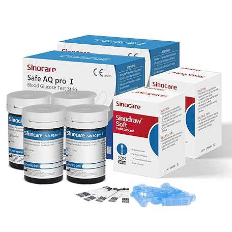 Thông tin sản phẩm Sinocare Test Strips, Safe AQ Pro I Blood Sugar Test Strips, 100pcs Diabetes Test Strips & 100pcs Lans, Blood Glucose Test Strips for Safe AQ Pro I Glucometer