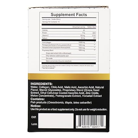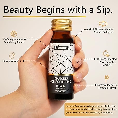 Thông tin sản phẩm Sipnutri Diamond Liquid Collagen Drink, 15000mg Marine Collagen Peptides, Hair Skin Nail and Joint Support, 50ml x 10 Bottles