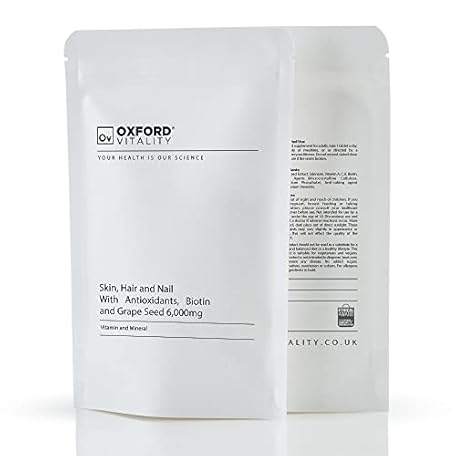 Sản phẩm Skin Hair Nails Supplement | Tablets Including Vitamin A, C, E, Selenium, Biotin & Grape Seed | Oxford Vitality | 240 Tablets đang được bán với giá ưu đãi là $18.639 tại nước Anh.