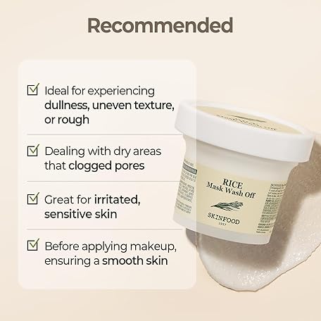 Thông tin sản phẩm SKINFOOD Mask Rice 120g - White Rice Exfoliating Scrub Wash Off Face Masks for Darken Skin - Facial Cleanser, Pore Exfoliator, Brighten and Soften Body Skin - Safe For Men and Women (4.23 oz)